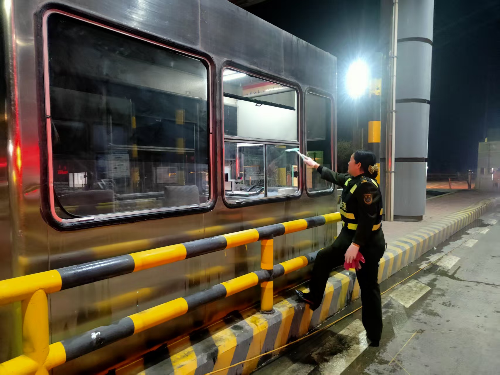 春雨中的保阜白合收费站 以文明服务筑