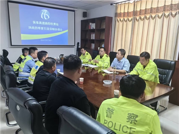 9月29日下午,曲阳收费站组织召开“决战四季度”引流保畅专题协调会,保阜公司纪检监察室作为对口包保部室出席,曲阳公安局交通管理大队灵山中队、郎家庄中队参会,曲阳收费站部分职工代表参会。