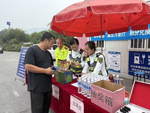 活动期间司乘人员通过现场扫码注册“冀交万里行”会员绑定车牌,可参与幸运抽奖一次。本次活动以100%中奖率激发司乘群众参与热情,提升高速服务的满意度和好感度,借助喜庆的活动氛围推广办理河北交投ETC;工作人员在活动现场向货运车主介绍“货车营销季”会员营销活动和保阜公司推出的“走保阜 享优惠”——货车凭三日内通行记录或积分兑换享正餐时段免费就餐和其他便民延伸服务;为推进“高速+文旅”融合发展,活动现场向司乘群众介绍“河北旅游季”客车会员营销活动相关优惠政策,发放站内自行设计印制的景点路线示意图,随时掌握周边景区动态,推送出游攻略。