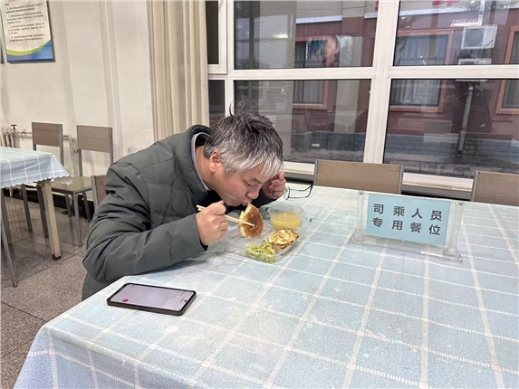 10月30日,副站长陈亚朋带领一班全体职工为滞留司乘提供一顿饭暖一路服务。