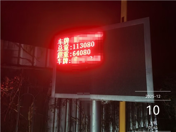 2025年12月9日4点50分,保阜高速收费运营调度中心稽查组联合顺平南收费站、高速交警及高速路政部门,在收费站出口开展联合治超执法行动,成功查获一辆涉嫌严重超载的“百吨王”货车。经现场检测核实,该车总重达113.08吨,属于严重违法超载行为。目前,涉事车辆及人员已依法移交顺平县治超站作进一步调查处理。